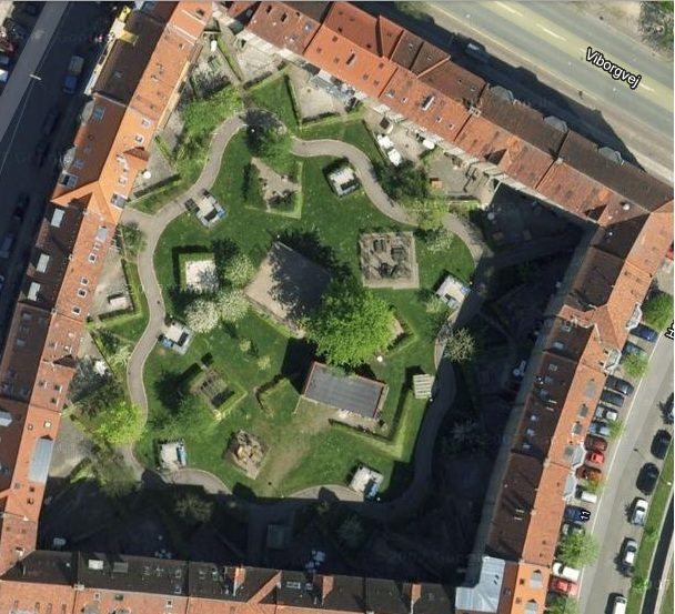 Her kan du se billeder fra blandt andet gårdhaven og facaden af boligforeningen på Ringkøbingvej.
